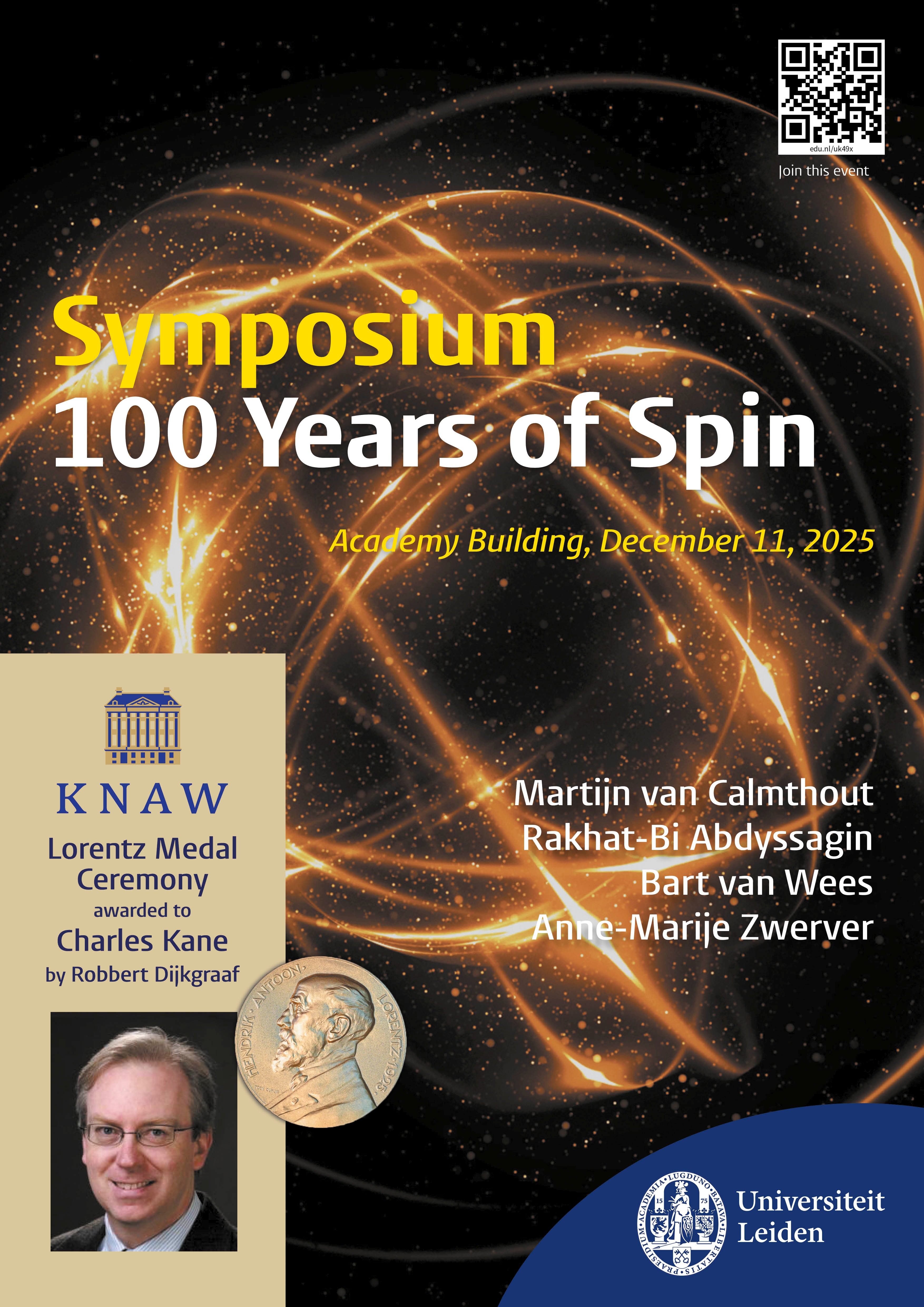 the ceremony took place during the 100 Years of Spin Symposium in the Academy building of Leiden University.