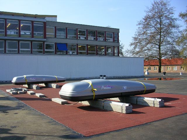 op het dak van het Da Vinci College geplaatst en getest -- zie ook de