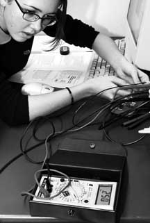 Duizenden euro's kosten de lichtdetectiebuizen, een bedrag dat de aanwezigen niet ontgaan is. "Ik hoop voor je dat hij het nog doet", zegt Tijs Klaver dreigend. Hij is met een medeleerlinge de buis aan het afregelen, maar het onderdeel blijkt ongeschonden.