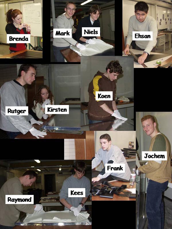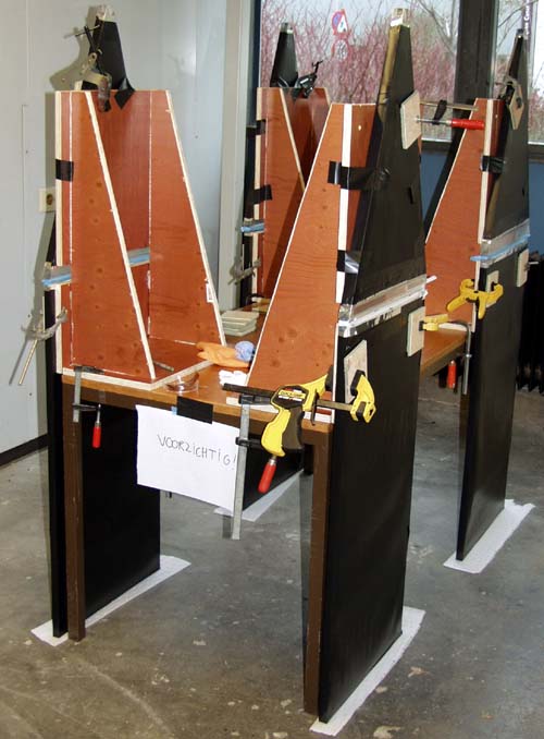 Lekgootje aanbrengen en scintillor platen in de lijmmallen plaatsen
